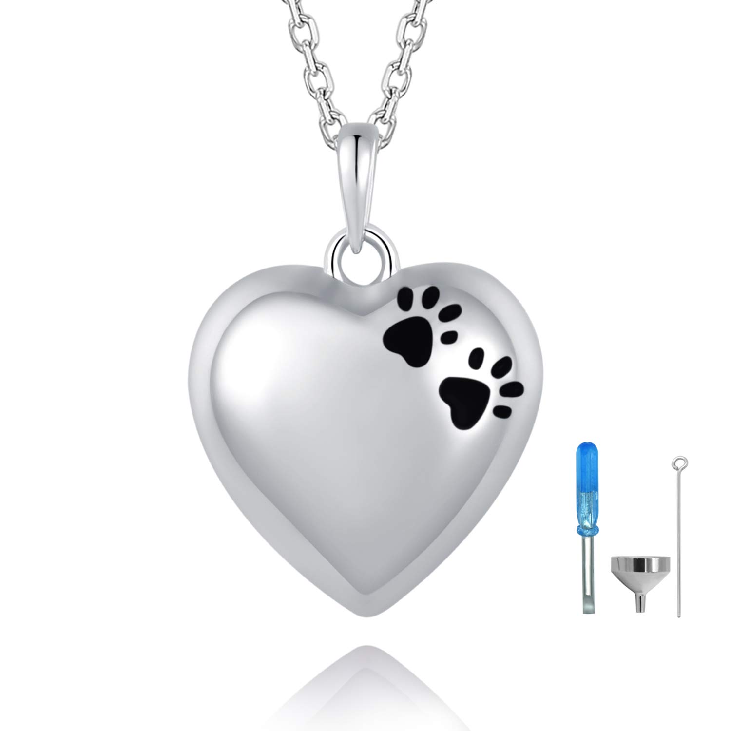 Beilin Pet Paw Print Cremation Jewelry S925 Sterling Silver Keepsake Memorial Urn Necklace For Ashes W Funnel Filler Kit
