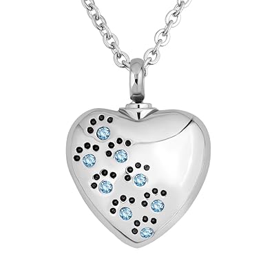 Lovelycharms Urn Necklace For Ashes Pet Paw Prints Heart Necklace Stainless Steel Keepsake Memorial Cremation Jewelry