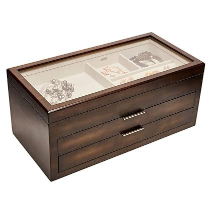 Amazon Com Mele Co Misty Glass Top Wooden Jewelry Box