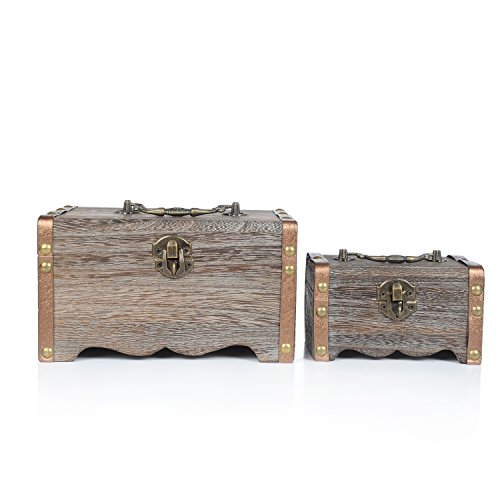 Set Of 2 Decorative Antique Rustic Style Wooden Nesting Boxes Mini Dresser Top Jewelry Organizer Chests