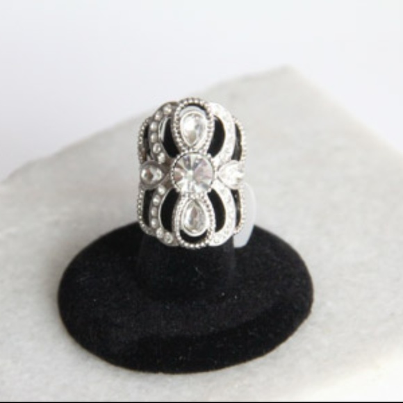Lia Sophia Silver Ring Art Deco Costume Jewelry