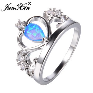 Details About Blue Fire Opal Cz Princess Crown 925 Silver Wedding Ring Women Fashion Size 5 12