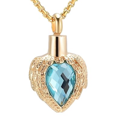 Golen Angel Wing Birthstone Heart Cremation Jewelry For Ashes Pendant Memorial Urn Necklace Stainless Steel Waterproof Jewellery