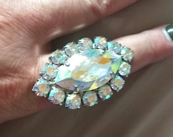 Details About Huge Crystal Ab Rhinestone Ring Pageant Costume Crossdresser Drag Queen 004