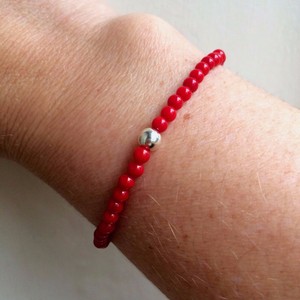 Details About Designer Red Coral Stretch Bracelet Sterling Silver Small Chakra Bead Jewelry