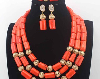 New Genuine Coral Beads Necklace Jewelry Nigerian Wedding African Coral Beads Jewelry Set Orange Coral Beads Designs W13592