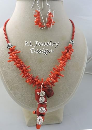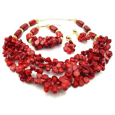 Amazon Com Red Coral Necklace Earrings And Pendant Set