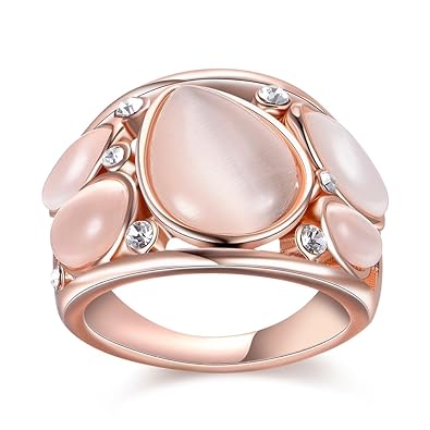 Mytys Fashion Rose Gold Band Rings Waterdrop Cat S Eye Stone Crystal Wide Cocktail Rings For Women Costume Jewelry