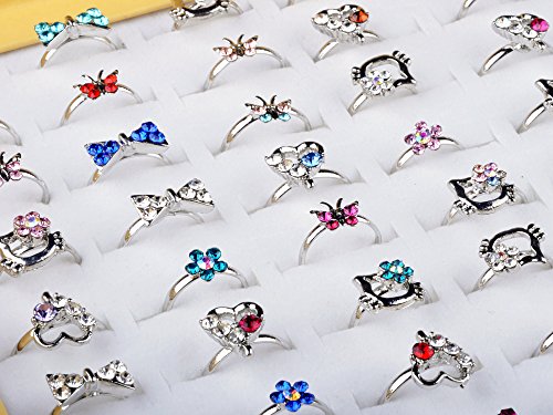 Shuning Children Kids 20pcs Cute Crystal Adjustable Rings Silver Jewelry