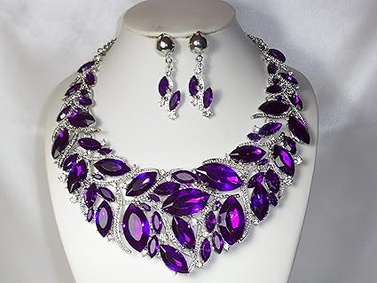 Purple Rhinestone Jewelry Set Pageant Necklace Drag Queen Jewelry Statement Set Ebay
