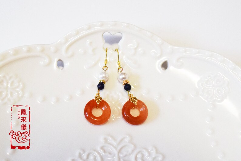 Jade Circle Jade Disc Shell Pearl Chinese Jade Earrings Gold Jade Jewelry