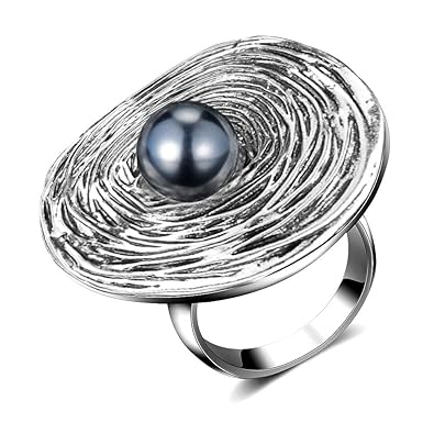 Mytys Vintage Silver Large Rings For Women Retro Bold Grey Simulated Pearl Cocktail Rings Costume Jewelry For Women Girl 6 10