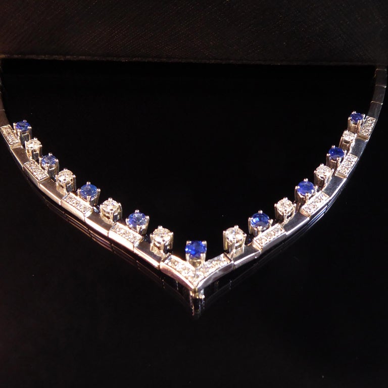 2 56 Carat Sapphire 2 01 Carat Diamond Necklace Contemporary Design White Gold