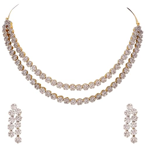 Ratnavali Jewels American Diamond Cz Gold Plated Designer Jewellery Set Necklace Set With Chain Earring For Girls Women Rva102