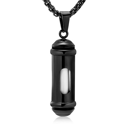Men S Urn Cremation Jewelry Bullet Locket Pendant Necklace For Ashes Or Hair In Memory Of Child Baby Or Loved One