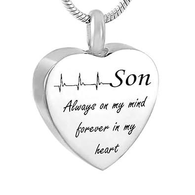Misyou Son Cremation Jewelry On Electrocardiogram Always In My Heart Memorial Necklace Ashes Keepsake Pendant