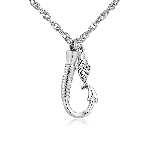 Dreamoni Fish Hook Cremation Urn Pendant Memorial Necklace For Ashes Fish Urn Cremation Necklace