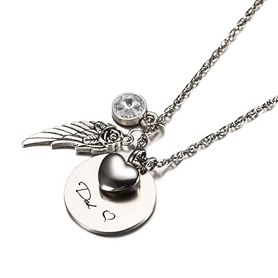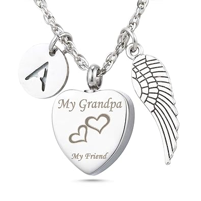 Giono Cremation Jewelry Grandpa Heart Urn Necklace 26 Initial Letter Alphabet Monogram Angel Wing Charms Memorial Keepsake Urn Pendant For Ash
