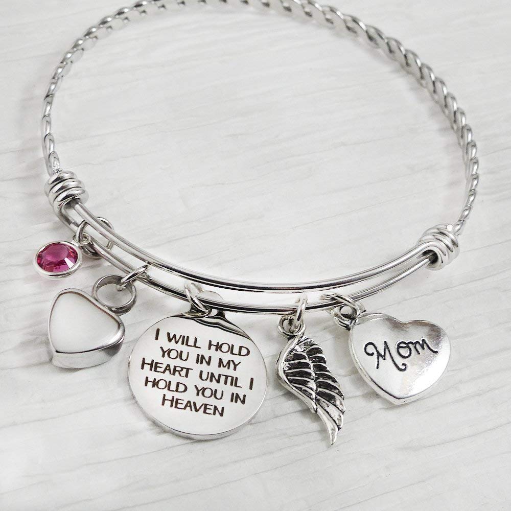 Urn Bracelet For Ashes Cremation Jewelry I Will Hold You In My Heart Until I Hold You In Heaven Bangle Bracelet Expandable Charm Bracelet Angel