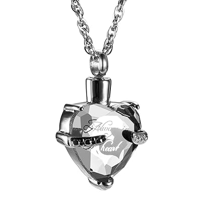 Constantlife Cremation Jewelry For Ashes Heart Shape Memorial Urn Necklace Stainless Steel Crystal Glass Pendant Ashes Holder Keepsake For Women