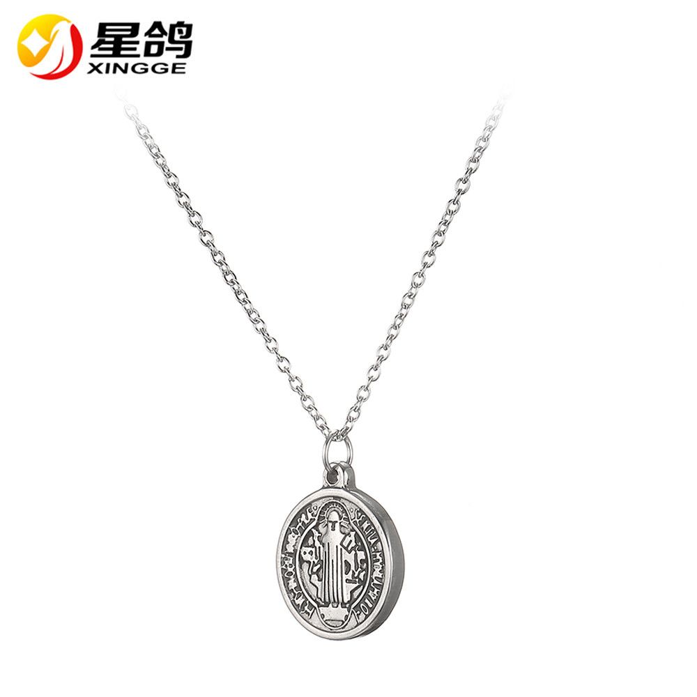 Wholesale Trendy Christian Jewelry Women Men Necklace Simple Design Round Jesus Pendants Stainless Steel Necklace Drop Shipping Wholesale Personalized