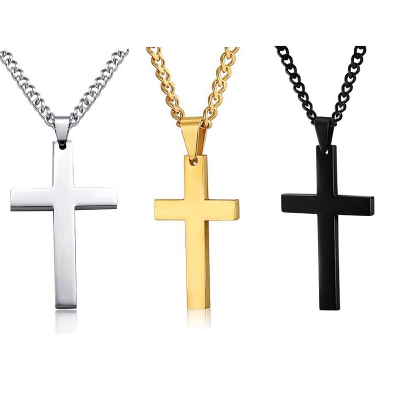 Pendant Cross Necklace Stainless Steel Black Gold Color