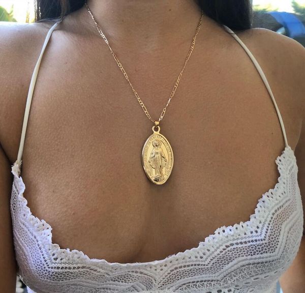 Us 2 92 30 Off Letdiffery Virgin Mary Maria Miraculous Medal Pendant Necklace Cartoon Style Catholic Religious Christian Jewelry For Women In