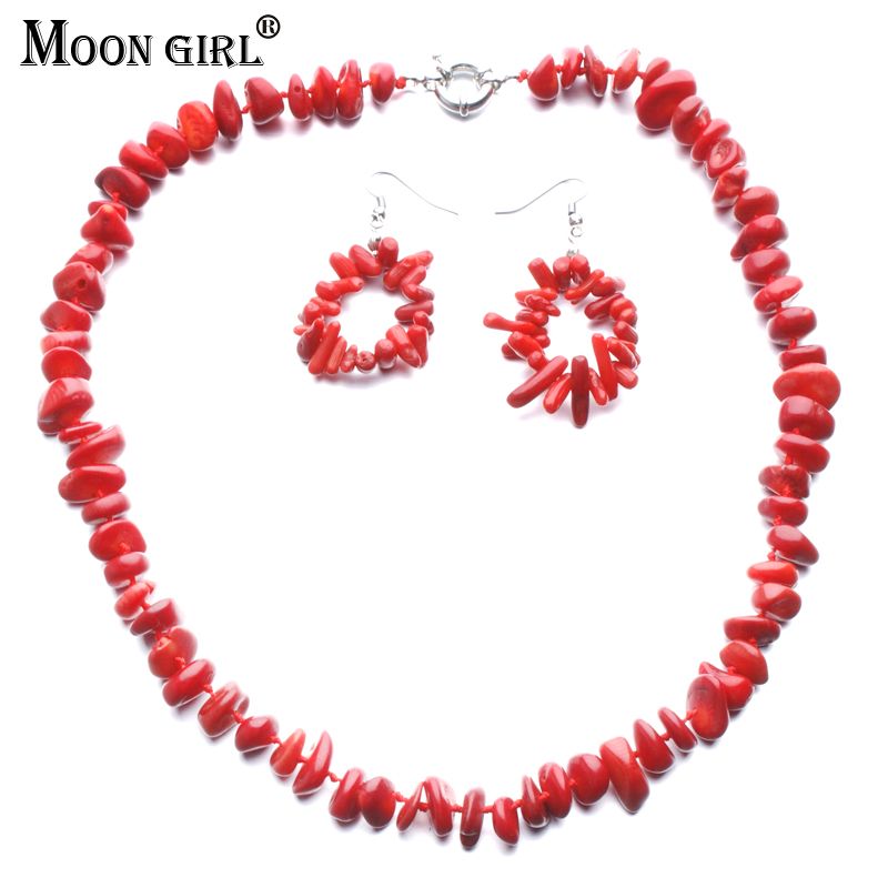 2019 Moon Girl New Design Red Coral Beads Necklace Amp Earrings For Women Party Wedding Jewelry Sets Fashion African Beads Jewelry Set From Nyk9